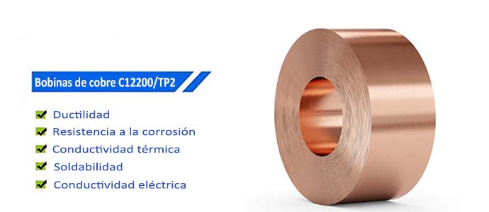 La tira de cobre C12200/TP2 es cobre desoxidado con fósforo y su composición química es principalmente cobre + plata, estaño, plomo, etc. El contenido de cobre de la tira de cobre TP2 es superior al 99.90 %, pero se añade alrededor del 0.015 % de fósforo durante el proceso de fundición. El objetivo principal es mejorar el rendimiento de la soldadura y la ductilidad, evitar la «fragilización por hidrógeno» y es más fácil de soldar que la T2.